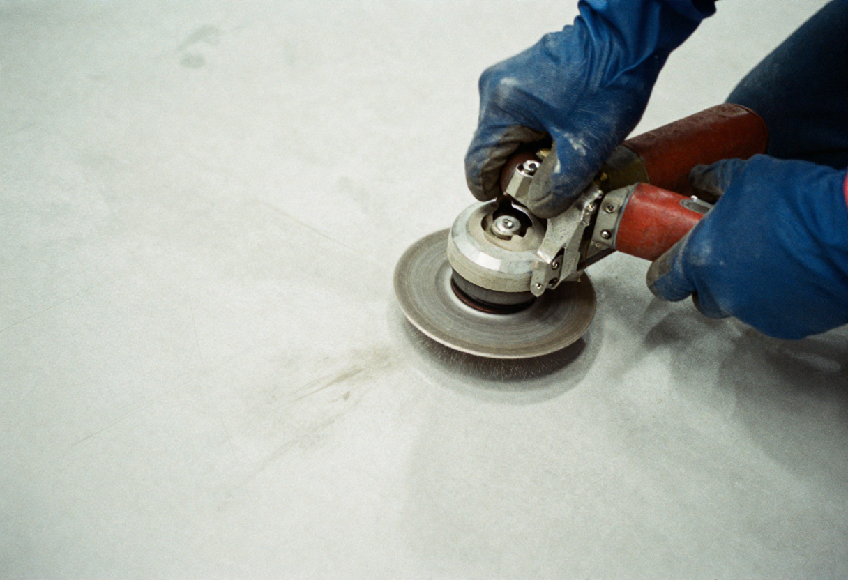 We start by grinding back the damaged area to create a clean, solid edge for the repair material to bond to. No shortcuts here – if the prep isn’t done right, your repair won’t last. We remove any contamination, oil, or loose material, then profile the surface so the new epoxy has something to grab onto properly.